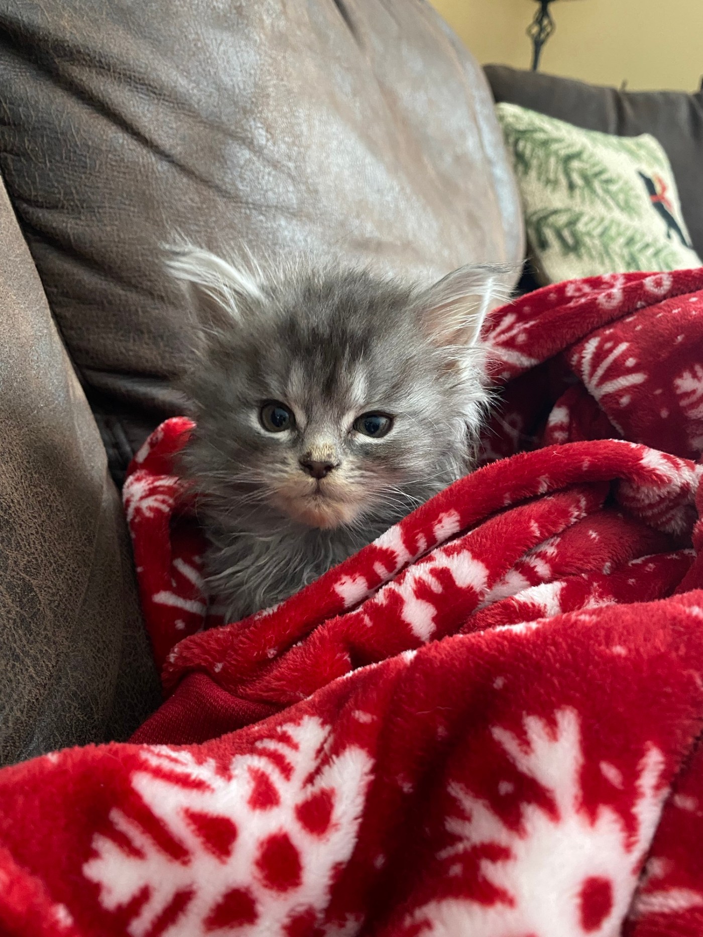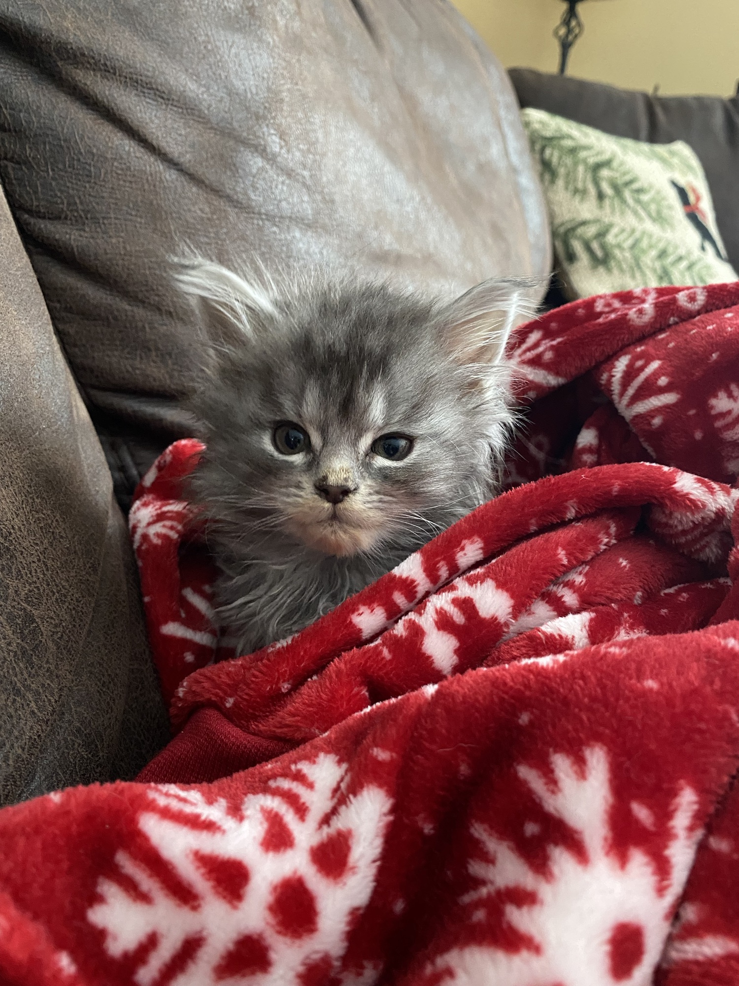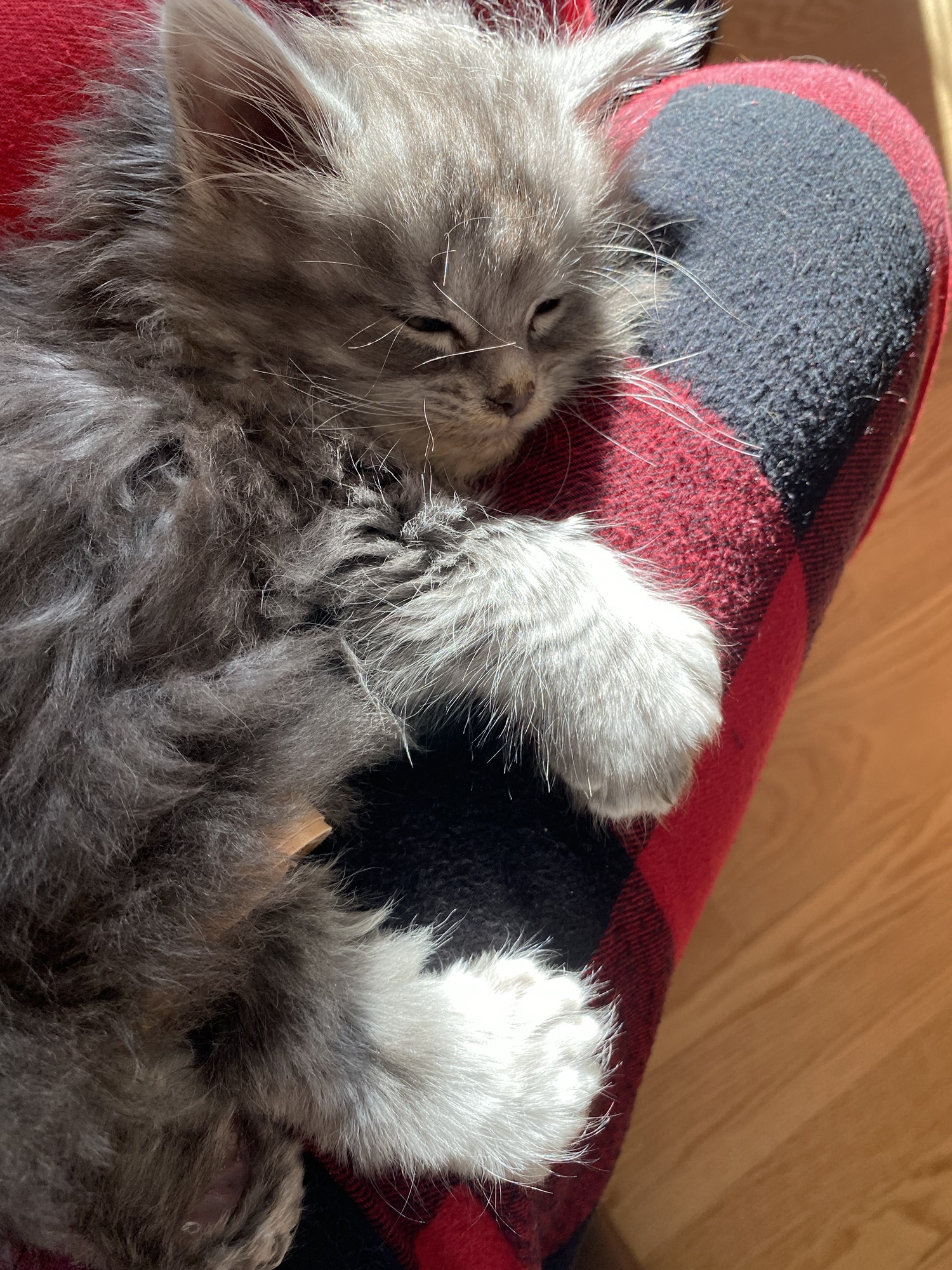 This weekend we brought home a new addition to the family. She is an 8 week old, pure Maine Coon Cat and she has already stolen all our hearts. She has the standard feral look of a coon cat with pointed, tufted ears, and big polydactyl paws in both the front and the back.